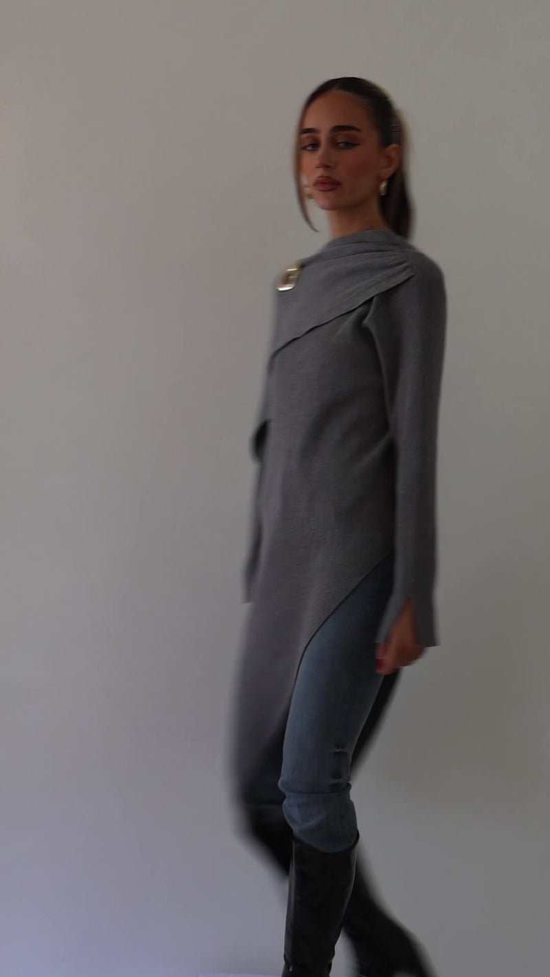 MILA ASYM KNIT TOP — GRAY